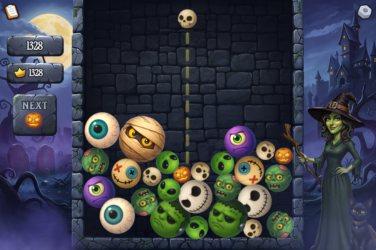 Can you match your drops, make perfect merges, and reach the Golden Pumpkin before the pile reaches the top? 👻